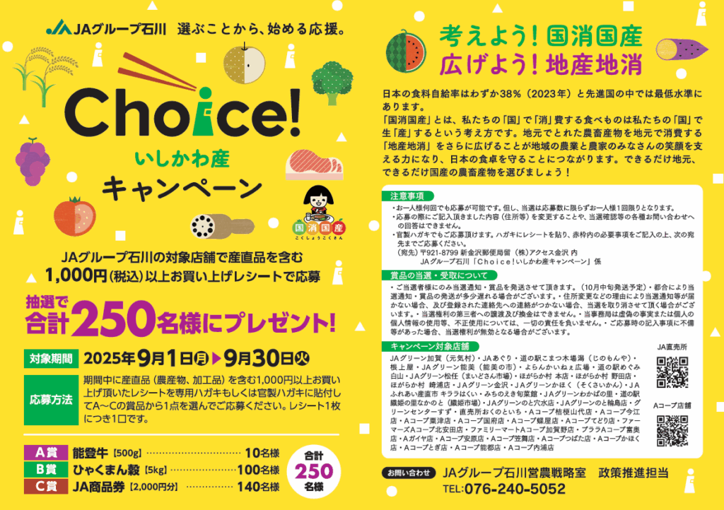 Choice!いしかわ産キャンペーンを実施します!【9月1日~30日】